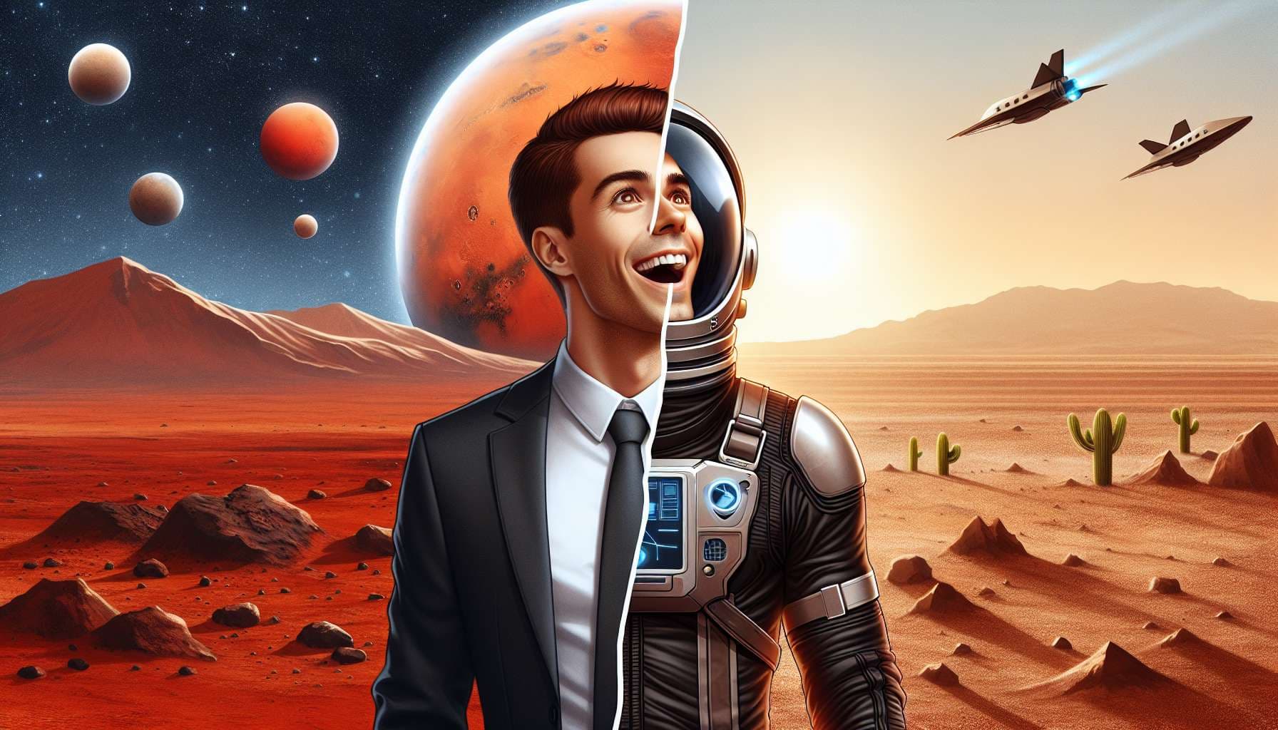 Musk alive and humans have been to mars or him not alive and they haven't, due mid 2045